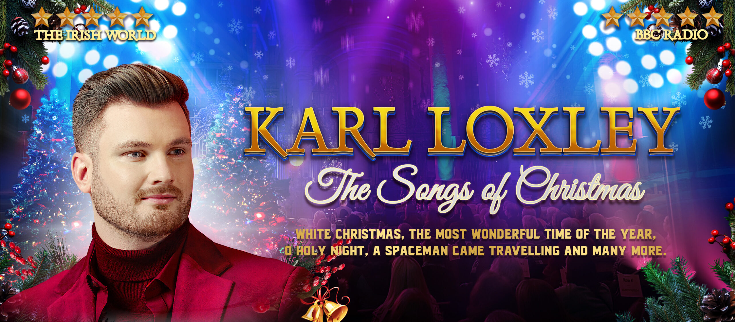 Rated by Sir Tom Jones as having one of the best theatrical voices he’d ever heard! Join Karl Loxley for a Festive Musical Celebration including the Classics ‘White Christmas’, ‘The Most Wonderful Time of the Year’, ‘O Holy Night’, ‘A Spaceman Came Travelling’, ‘I Believe In Father Christmas’, Songs from the musicals and much more.